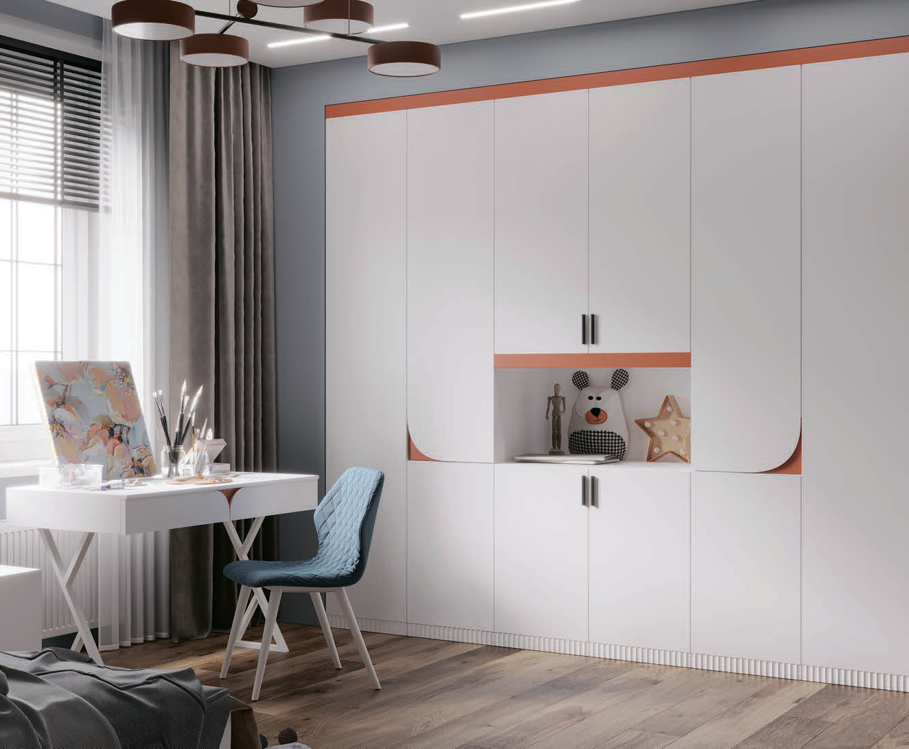 Простые и уютные мебельные фасады - идеальное решение для создания комфортной атмосферы в детской.