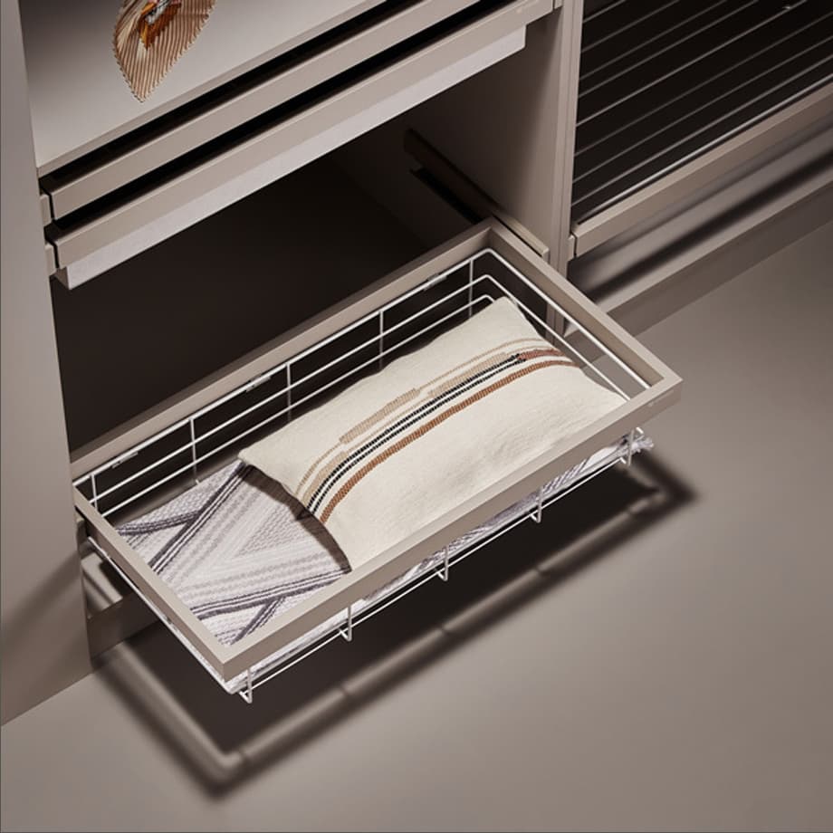 Полное выдвижение обеспечивает легкий доступ ко всей одежде и белью, оптимизируя пространство гардероба.