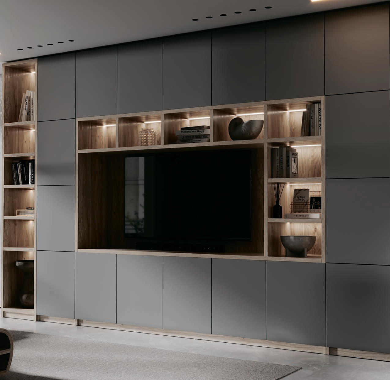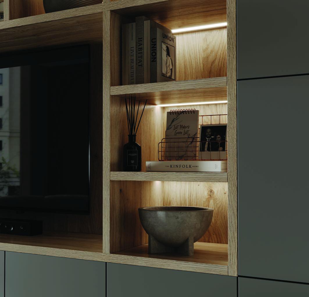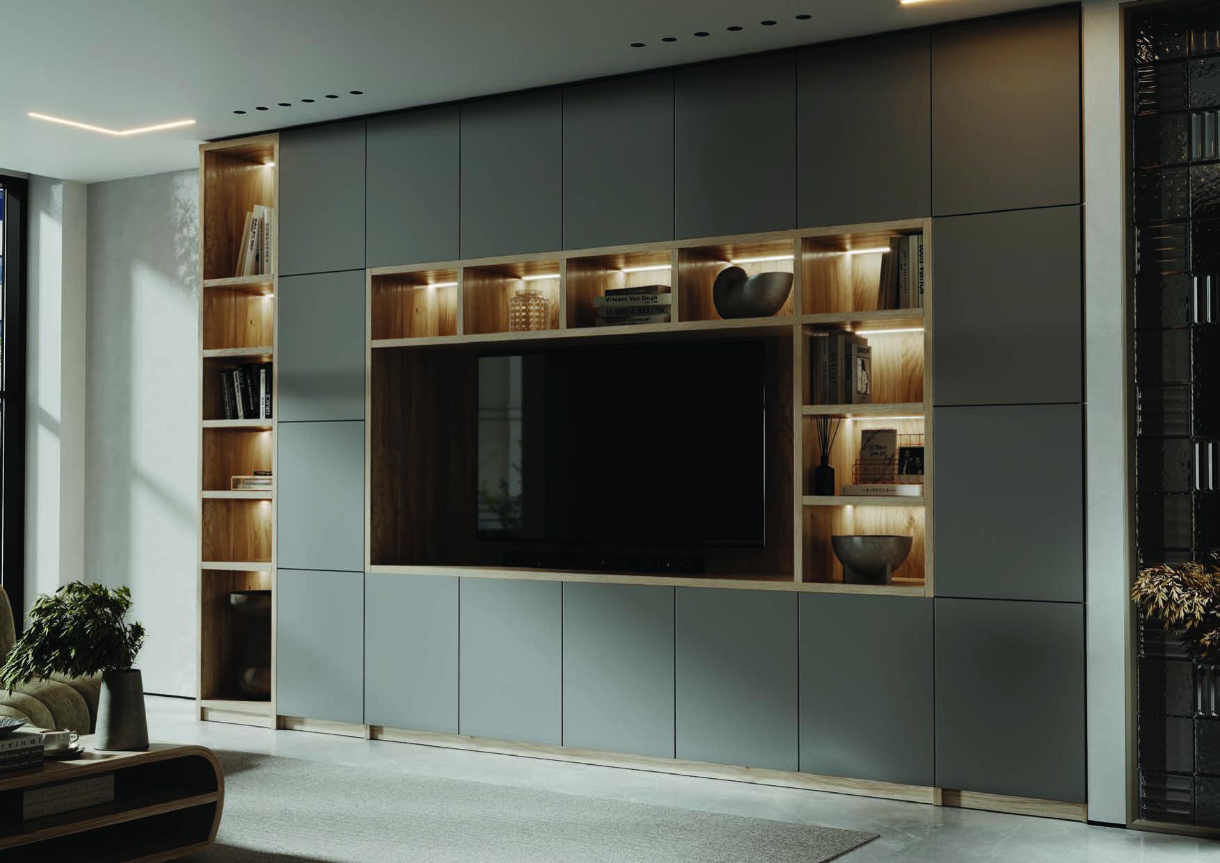 Обаяние гостиной «Камилла» кроется в сочетании лаконичных форм, теплой палитры и приятной тактильности. Матовые фасады и природное тепло древесного декора, выразительная геометрия мебельных композиций и атмосферная подсветка – каждая деталь этой коллекции работает на создание изысканной атмосферы. Удобство и функциональность, спокойные и приятные для глаз оттенки, выверенные пропорции фасадов - все это делает гостиную «Камилла» прекрасным выбором для ценителей современных респектабельных интерьеров. Созданная на стыке традиций и современных трендов интерьерной моды, эта гостиная сделает дом уютным пространством, где можно отдохнуть от бурного ритма современной жизни, не отказываясь от современного уровня функциональности и комфорта