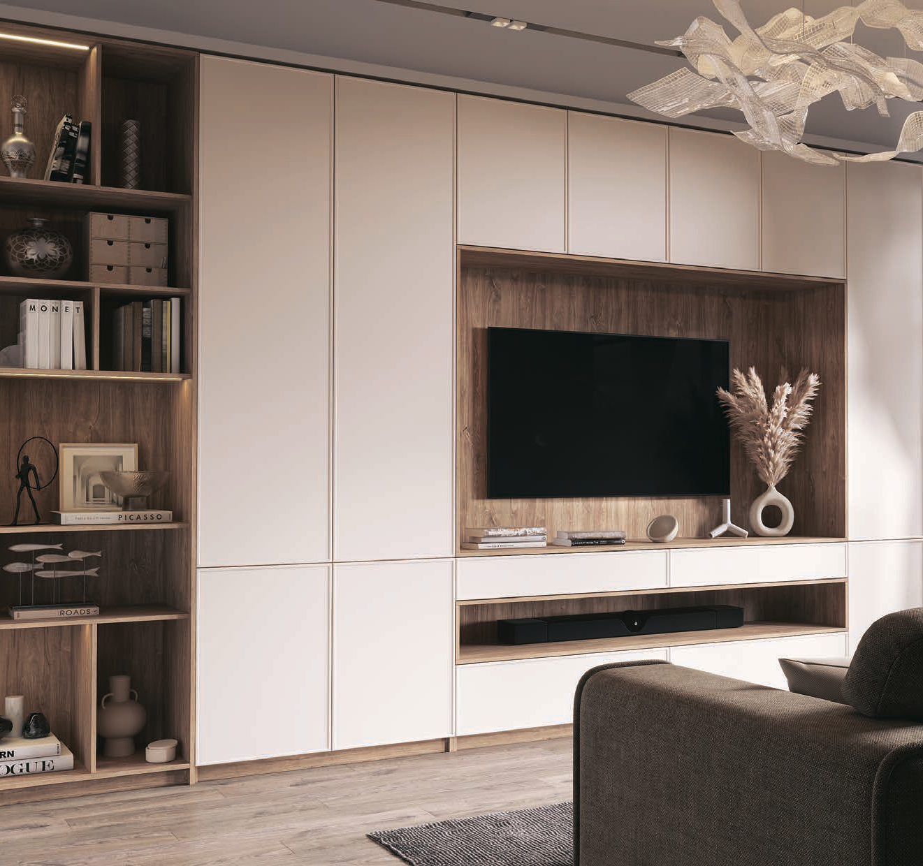 Гостиная «Лина» - это образец элегантного стиля и утонченного вкуса. Данная коллекция отражает современные тенденции и гармонично сочетает в себе красоту и функциональность, привнесет неповторимый шарм в любое помещение. Сочетание монохромных поверхностей, текстуры дерева и элегантной подсветки 1 разворачивает перед наблюдателем настоящий перфоманс, который каждую минуту открывает новые грани интерьера. Используйте эти преимущества при планировании гостиной!
