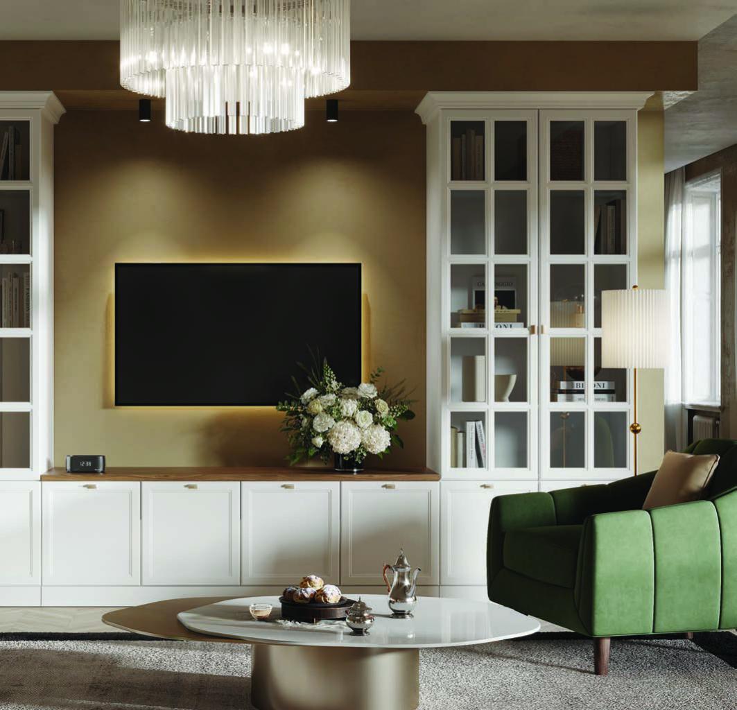 Гостиная «Паулина» станет функциональным и эргономичным украшением комнаты в классическом стиле. Тумба для ТВ в сочетании с распашными шкафами с витриной позволит организовать не только зону для отдыха и просмотра кино, но и разместить вещи, красивый сервиз или стильные аксессуары. Мебель в таком стиле - это максимум очарования, комфорта, динамики. Функциональная комплектация этой гостиной станет прекрасным вместительным хранилищем для всего необходимого. Максимальное удобство в безупречном классическом оформлении.