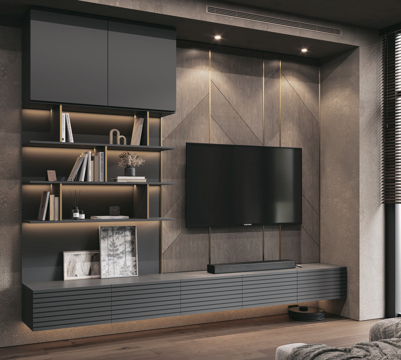 Фрезеровка: «Калисто», молдинг «Золото» Гостиная - витрина каждой квартиры. Так думают большинство людей, когда их спросят о самой важной комнате дома. Поэтому при выборе мебели, хочется, чтобы предметы интерьера были не только практичными, но и красивыми. Современная и очень стильная гостиная «Амальфи» позволяет практически полностью обставить комнату, сохраняя при этом однородный и последовательный стиль. Выполненная в сочетании древесных тонов и графита, она гармонично дополнит интерьер