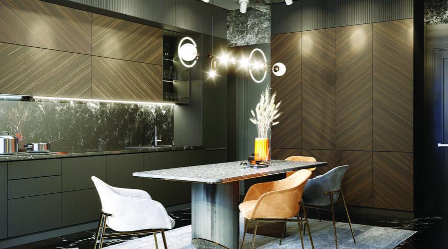 Ламинированные древесностружечные плиты покрываются эко-шпоном. Наиболее распространены декоры с имитацией древесины, но также доступны однотонные варианты, а также поверхности с текстурами под бетон, камень и минералы. В производстве применяется только ЛДСП высшего качества с классом эмиссии Е1.