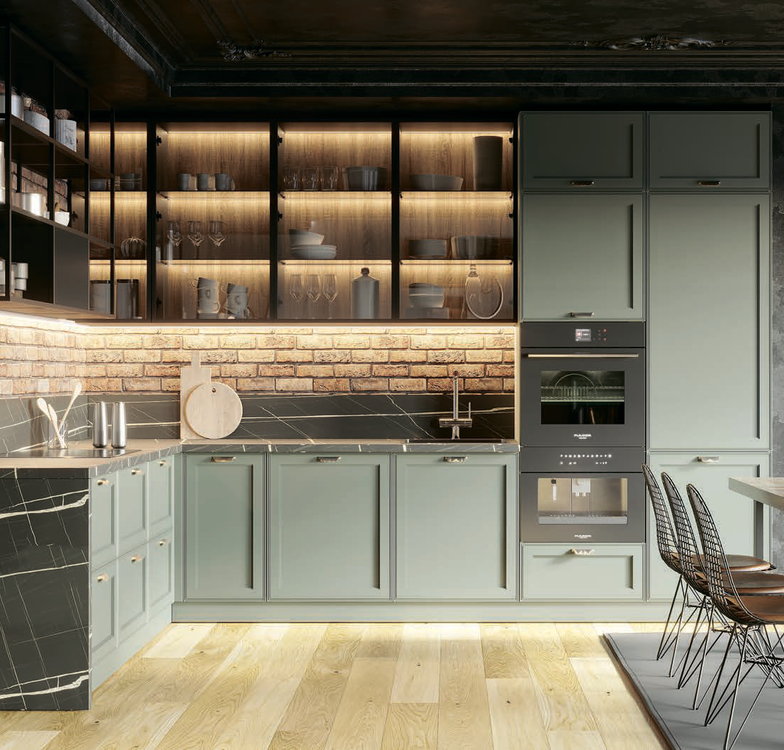 Геометрия линий фокусирует наше внимание на эстетике кухни «Массимо». Мы открываем для себя мир, наполненный многогранной игрой цвета и материалов.