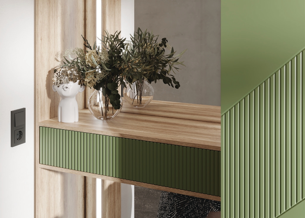 Прихожая «Сантьяго» с фрезерованными фасадами станет отправной точкой современного интерьера.