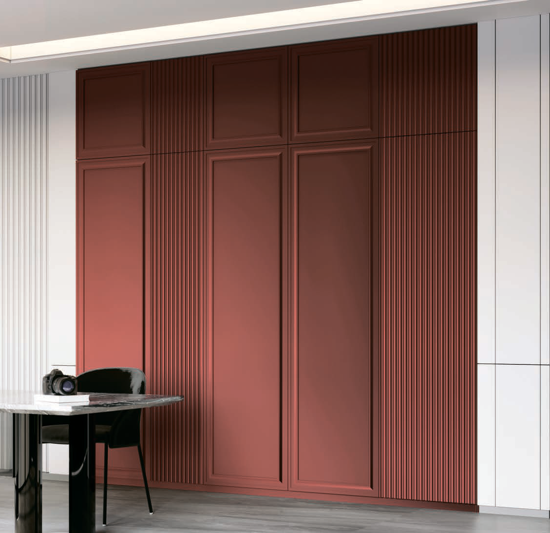 Эмаль — это окрашенный МДФ с финишным покрытием на лаковой основе, которое может иметь матовую или глянцевую поверхность. Такой вариант отличается наиболее широкой цветовой палитрой. Для окрашивания используются каталоги систем RAL, NCS и WOOD COLOR, а также высококачественная итальянская краска Renner.