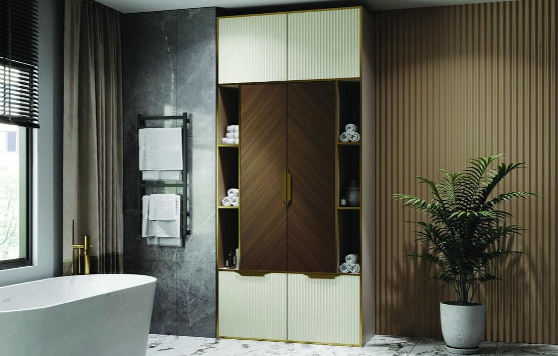 Мебель для ванной комнаты «Клермонт» выполнена из высококачественного МДФ. Фасады украшены фрезеровкой и декоративными элементами в цвете «золото», которые придают композиции изысканный и элегантный вид. Идеальное сочетание текстуры натурального дерева и строгой геометрии в декоре фасадов. Глубокий цвет сделает ванную комнату аристократичной. Теплый природный оттенок создаст уют в помещении. Такой вариант мебели для ванной комнаты идеально подойдет любителям эко в интерьере.