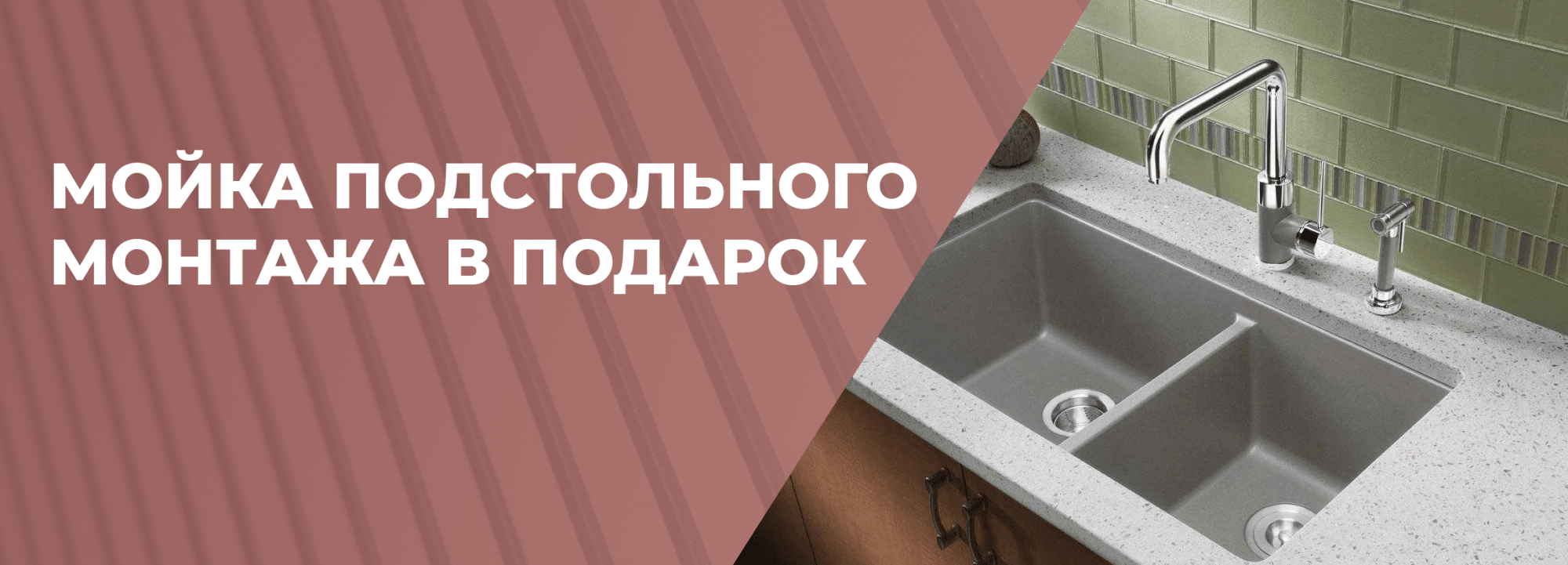 Мойка подстольного монтажа в подарок при покупке столешницы из камня.